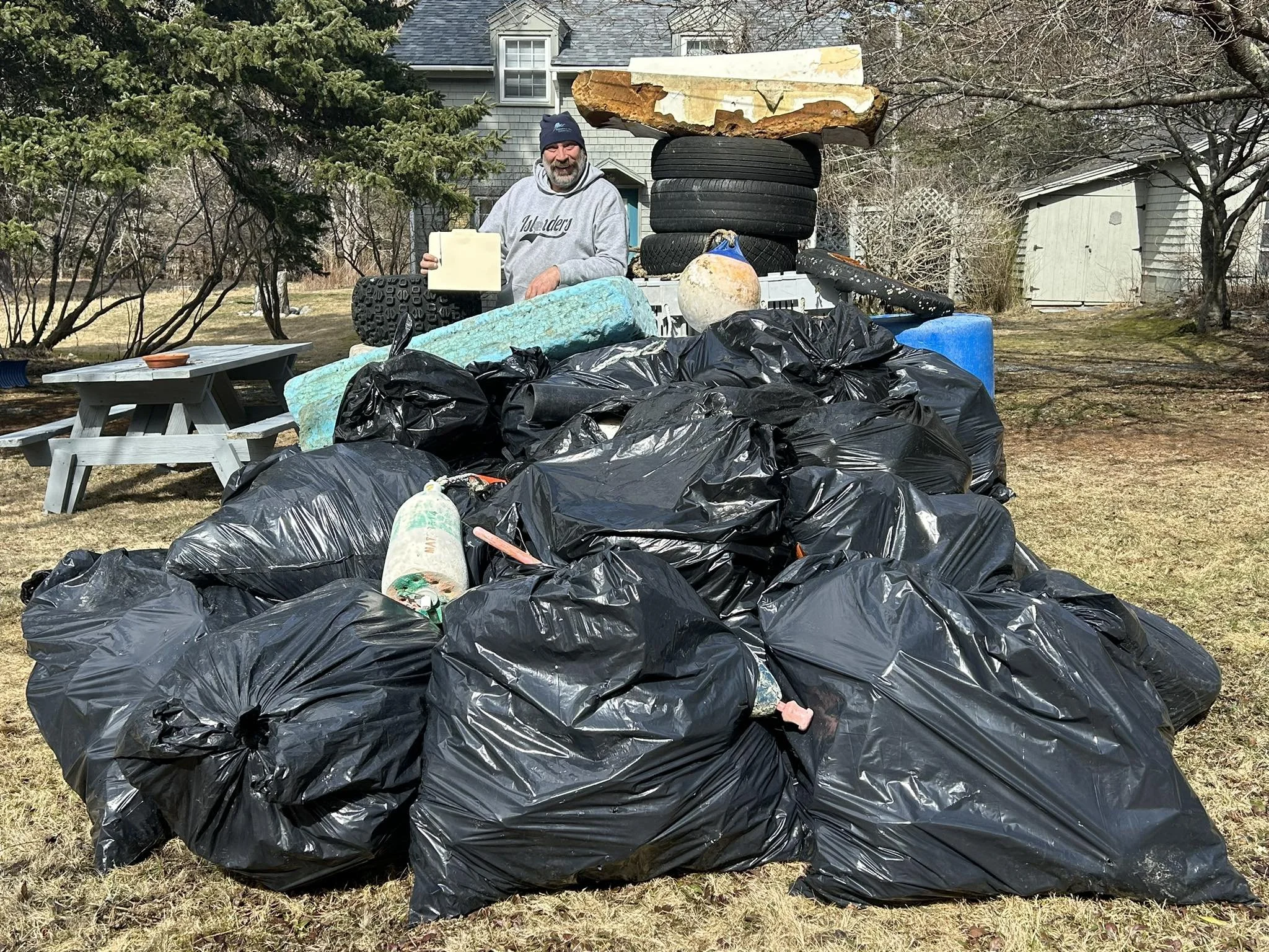 What we collect is all plastic and Styrofoam. We bag and dispose of all plastic bags, aluminum cans, lost rope, buoy pieces, busted traps as appropriate and most other items that would be considered garbage. We do not currently collect wood or pressure treated wood unless the item can be promptly repurposed. We generally leave glass, metal and bricks behind. Glass if collected and any potentially sharp items should be kept separately in buckets for the safety of those moving, handling and later sorting the debris. We empty all liquids from water and soda bottles before bagging and bringing them in.